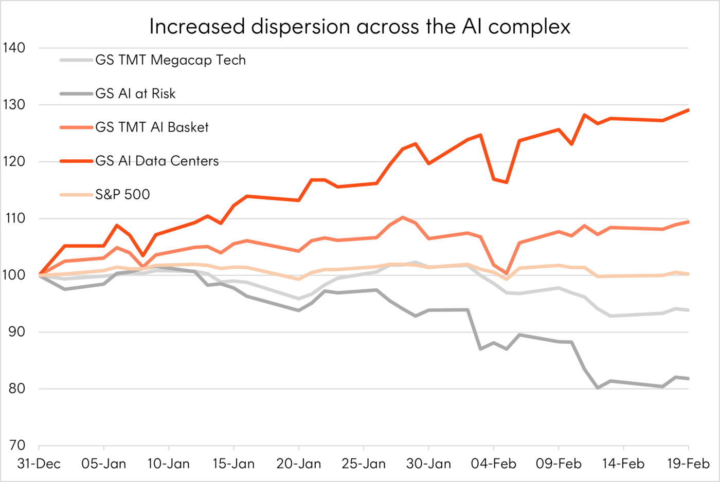 Source: Goldman Sachs. As at 19 February 2026. Rebased to 100 as at 31 Dec 2025.