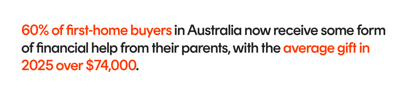 A high HECS debt is no longer uncommon, median weekly rents recently topped $650 a week1 and house prices in Australia’s largest cities have almost doubled2 in the past 10 years. That may be why, according to Mozo, more than 60% of first-home buyers in Australia now receive some form of financial help from their parents, with the average gift in 2025 over $74,0003.