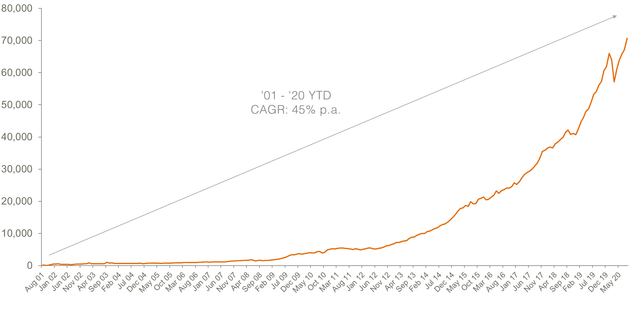 As the chart above illustrates, while the Australian ETF industry has grown since its inception in 2001 at a rapid 45% compound annual growth rate, the almost 100 year-old LIC/LIT industry has, in the same period, grown at a far less rapid rate of 11% p.a. Since exceeding the size of the LIC/LIT industry in January 2019, the Australian ETF industry has grown to be ~$25B larger in size as at end August.