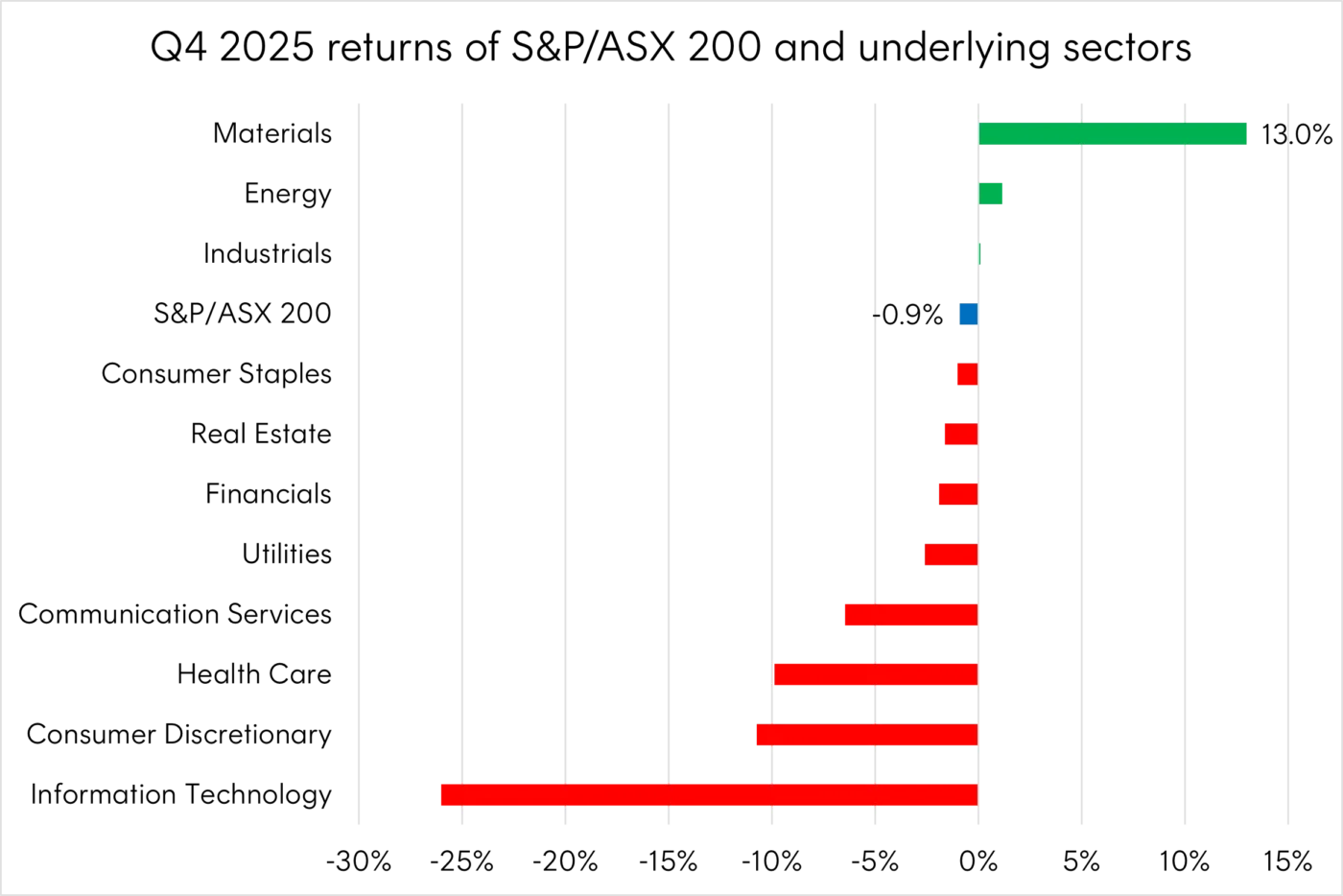 The Australian market ended the year with a muted 0.9% Q4 decline. However, this headline figure masked significant moves under the surface.