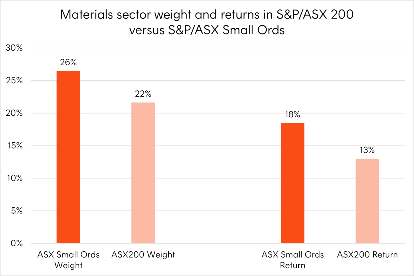The breadth of the Materials rally has also been the key contributor of Australia’s size rotation. Materials make up over 25% of the ASX Small Ords Index and, on average, Australia’s smaller miners experienced outsized gains in Q4 leading small caps to outperform large caps.