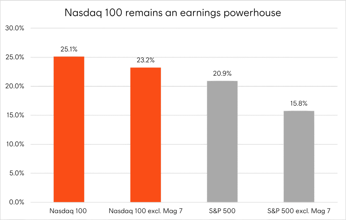 Beyond earnings, supportive financial conditions and fiscal policy provide additional tailwinds for the Nasdaq 100.