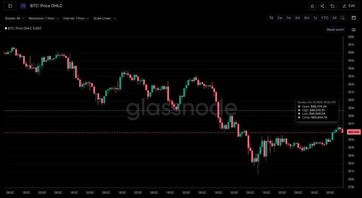 According to data from Glassnode, from 20-22 November 2025, over US$11.4 billion of bitcoin losses were realised in the three-day period when prices were between US$84-86K.