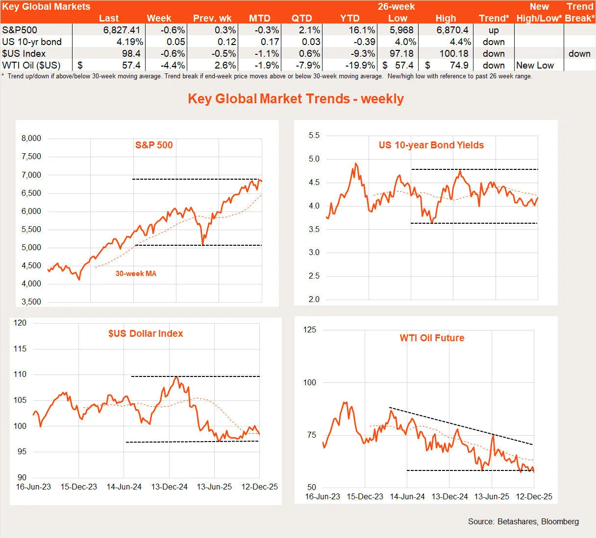 With the US government having re-opened for several weeks, the data flow is stepping up once again. This week brings retail sales and the combined October and November payrolls reports on Tuesday (US time), the November CPI on Thursday and the October private consumption expenditure deflator measure (PCE) on Friday.