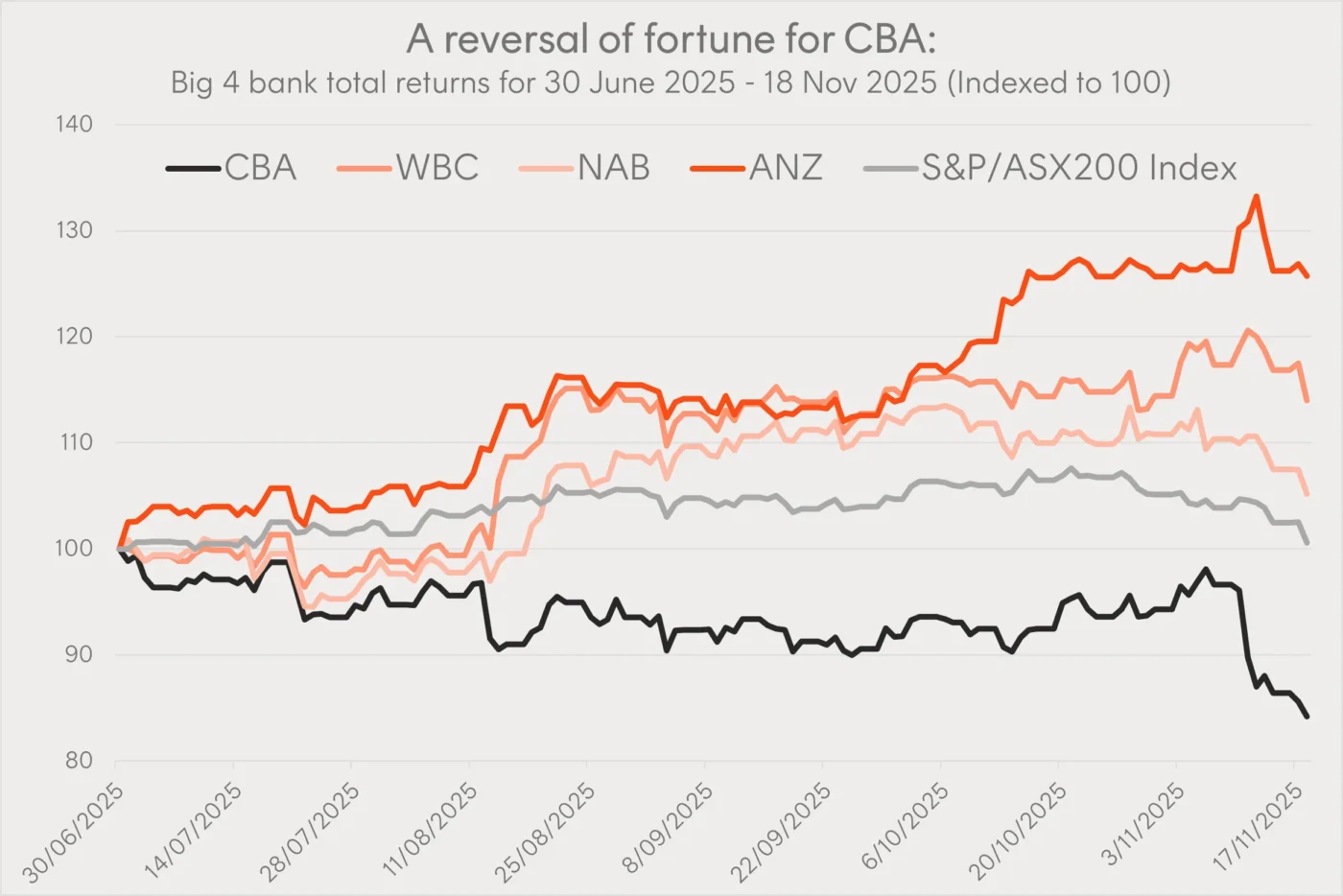 Source: Bloomberg. 30 June 2025 to 18 Nov 2025. Past performance is not an indicator of future performance.