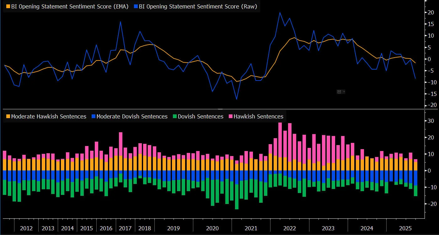 According to the model, Powell’s opening statement showed a clear dovish bias, and was in fact more dovish than last year when the Fed cut by 50 bps. However, the market had strong dovish expectations going in, and the Fed still slightly fell short of expectations.