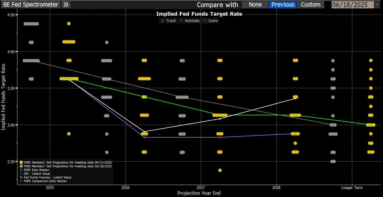 Fed summary of economic projections (link to full summary https://www.federalreserve.gov/monetarypolicy/files/fomcprojtabl20250917.pdf)