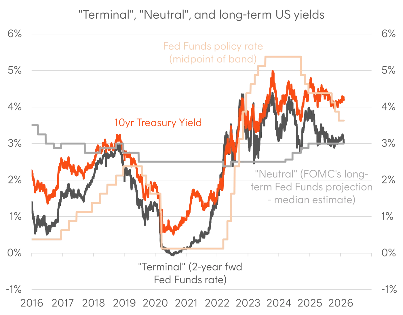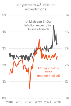 The Trump Administration has frequently attacked the FOMC and Chair Powell for not cutting rates aggressively enough, and Fed independence was a recurring theme for markets throughout 2025. “Fiscal dominance” – where a central bank works in service of fiscal policy by keeping rates lower than they should otherwise be – remains a risk in an environment where the Administration favours expansionary fiscal policies to support nominal growth.