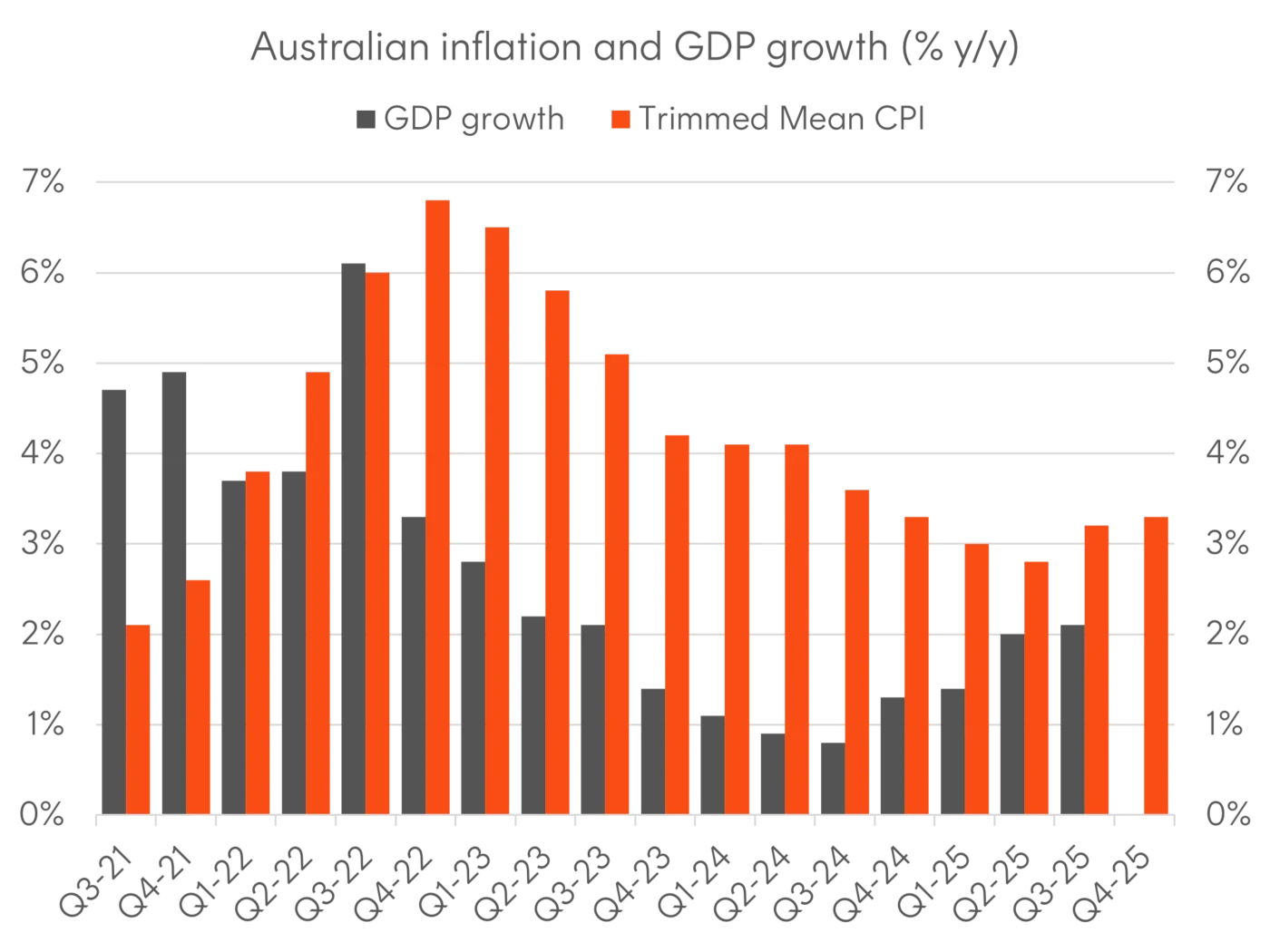 Source: ABS. GDP data as at 30 September 2025 and CPI data as at 31 December 2025.