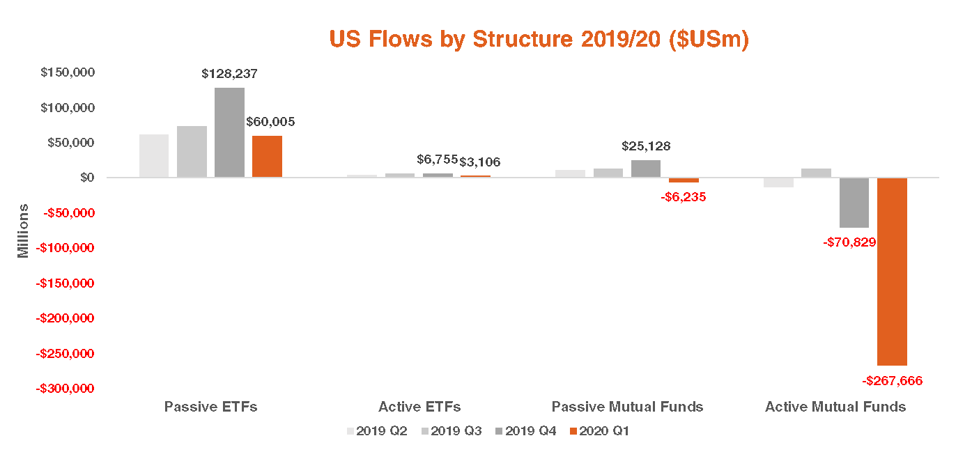 ~US$6B was withdrawn from passive managed funds – however that paled in comparison to the ~US$268B in outflows from active managed funds.