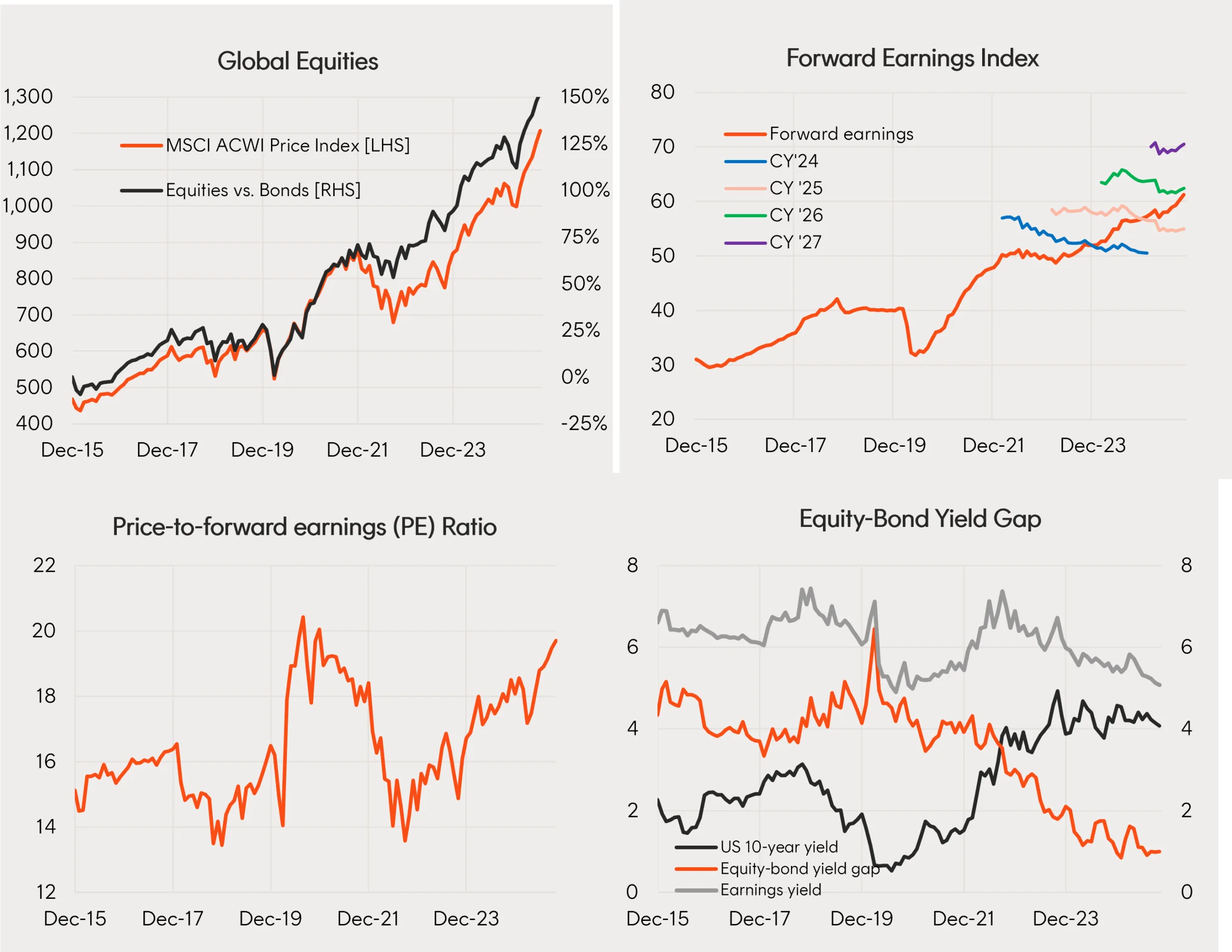 - Earnings expectations edged up a little further in October, with current expectations consistent with solid 15% growth in forward earnings by end-2026.