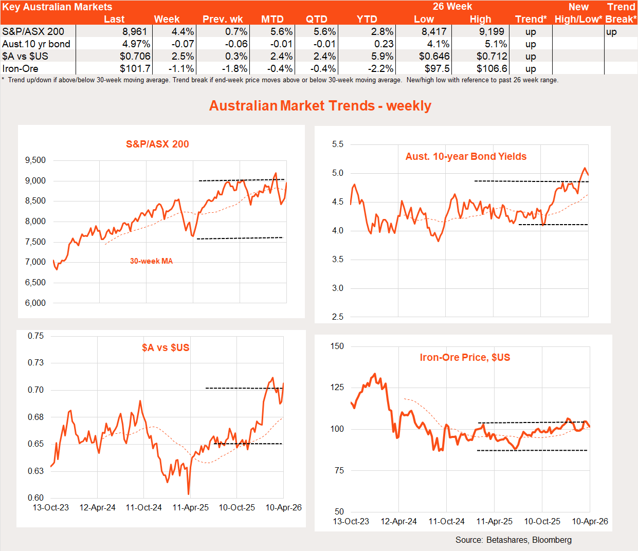 As regards the RBA, the question is whether the worsening outlook in Iran makes it less likely it will hike again in May despite the energy-related upward pressure on inflation. The markets have wavered but have broadly retained a probability of around 70%. A May rate hike is still my base case.