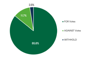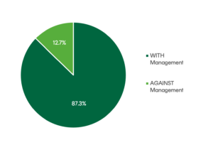 Across Betashares’ range of ethical and impact ETFs[1], in the quarter ending 31 March 2026 we voted at 45 shareholder meetings on 605 individual proposals. We voted FOR 519 times and AGAINST 71 times and WITHHOLD 15 times.