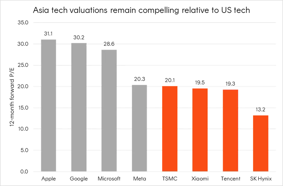 Beyond the China tech sector, the AI capex juggernaut is supporting the broader semiconductor supply chain located across developed Asia, and includes companies such as Samsung, SK Hynix and Taiwan Semiconductor Manufacturing (TSMC).