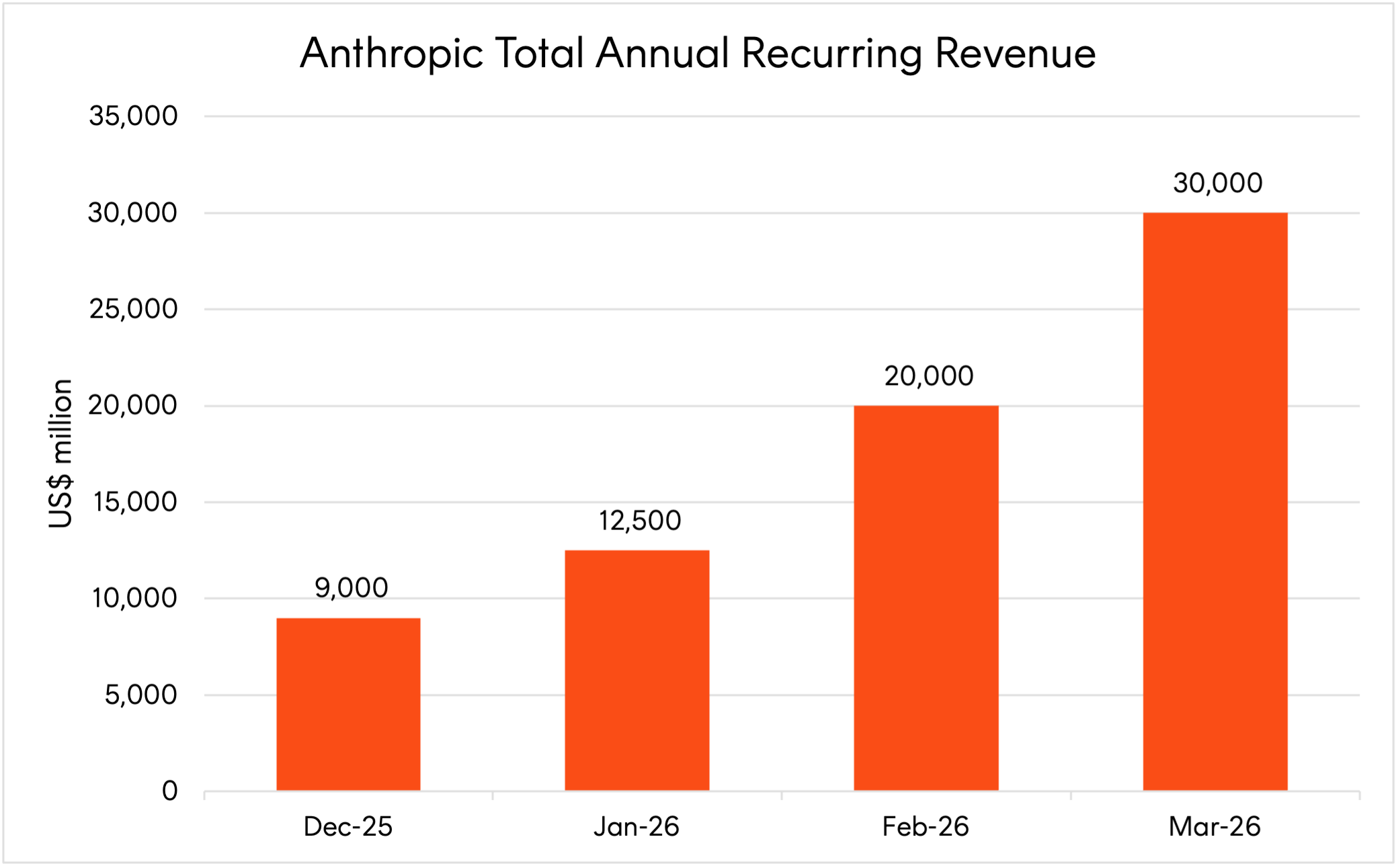 - Anthropic hits US$30B in annualised revenue, up from $9B at the end of 2025, fuelled by rapid uptake from businesses.