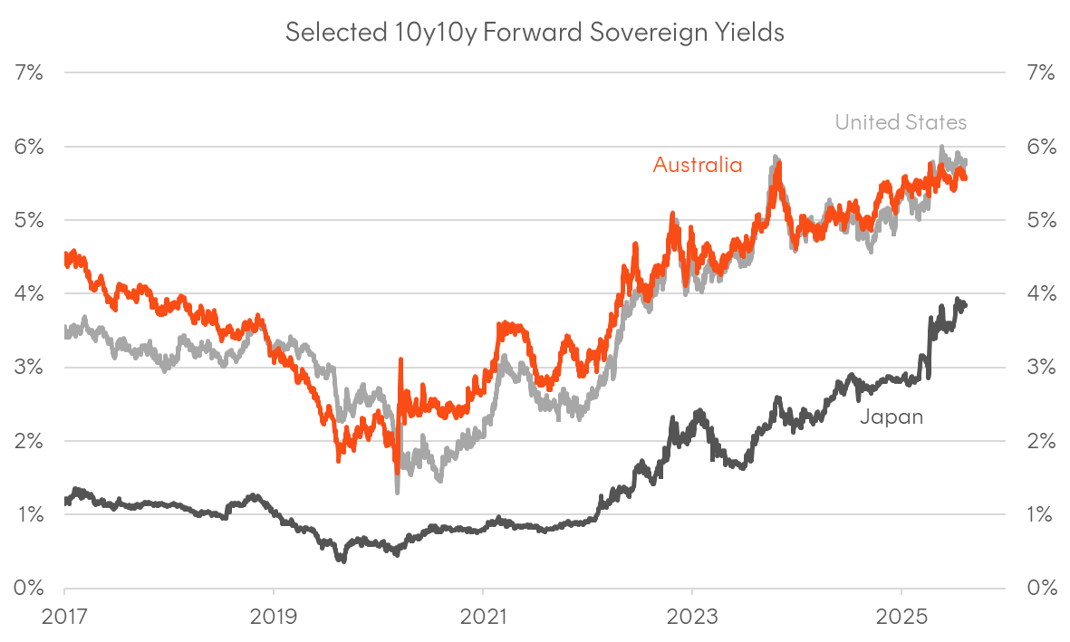 Chart 2: Selected 10y10y forward sovereign yields; as at 12 August 2025; Source: Bloomberg